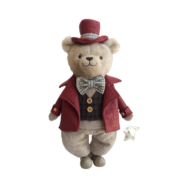 Bentley Bear 29x40cmAdd a cosy, traditional feel to your festive décor with Bentley Bear, a charming Christmas character full of seasonal warmth. This soft plush bear is dressed in a textured red jacket with classic checked details and a matching winter hat, creating a timeless festive look. Holding a shimmering star ornament, Bentley Bear brings a gentle sparkle and joyful character to your Christmas display.