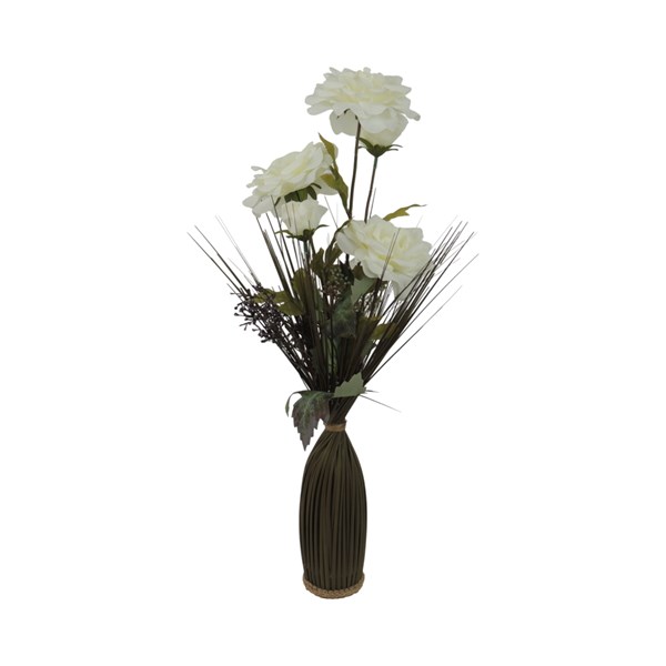 White Camellia Grass Floral Bundle 65cmA free-standing grass floral bundle with White Camelia and green foliage. A lovely addition to any room.